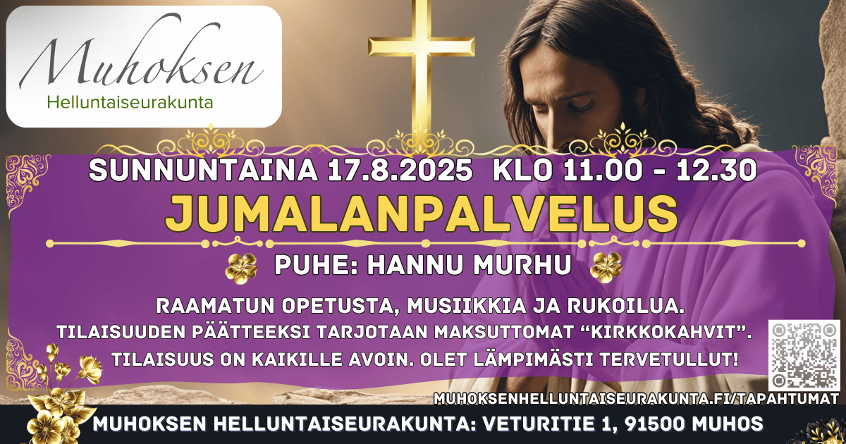Jumalanpalvelus Puhe: Hannu Murhu + Lisää Google kalenteriin + iCal / Outlook export Päivä elo 17 2025 Expired! Aika 11:00 - 12:30 Jaa tapahtuma